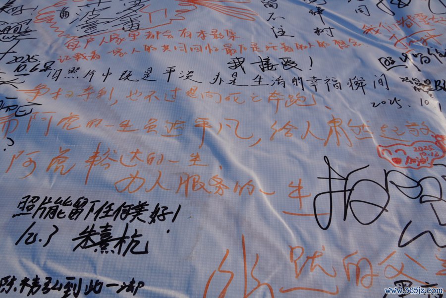 现场,阿虎的肖像照被印在比他高一倍的背景板上,边上写着四个大字,“不说相遇”。他很可爱,合计魄力。桌上摆着他提前为我方准备的遗像,周围放着他亲手种的花。
