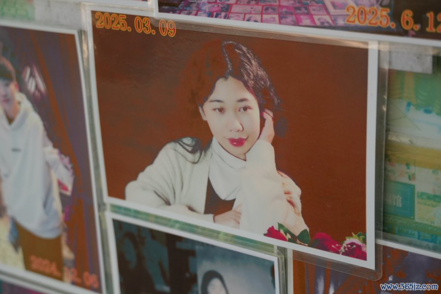 阿虎为曹梦琪拍的像片,如今贴在照相馆的大门上。黄佳瑜 摄