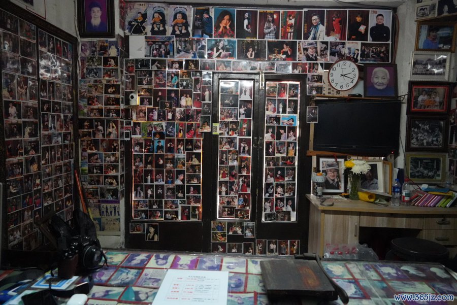 照相馆深处,是阿虎的“小世界”,橱门上贴满了他斗蟋蟀的像片。黄佳瑜 摄